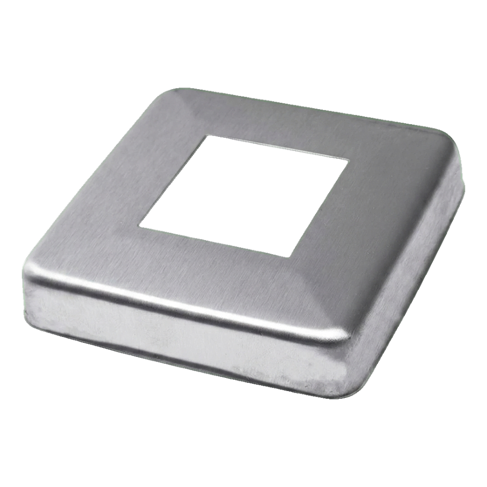 Afdekrozet 105×105 mm is een vierkant afwerkelement bestemd voor het afdekken van montagegaten rond 40×40 mm profielen in balustrades en constructies van roestvrijstaal. Door de precieze afstemming op het vierkante profiel maskeert het effectief de doorvoerplaatsen van de staander door het dragende element, waardoor de balustrade een professionele, nette uitstraling krijgt.