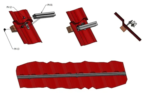 Het montageprofiel is geschikt voor de bevestiging van fotovoltaïsche panelen met behulp van midden- en eindklemmen. De klemmen worden bevestigd aan het bovenste railkanaal van het profiel. Het onderste railkanaal maakt montage op adapters, dakhaken of driehoeken mogelijk.