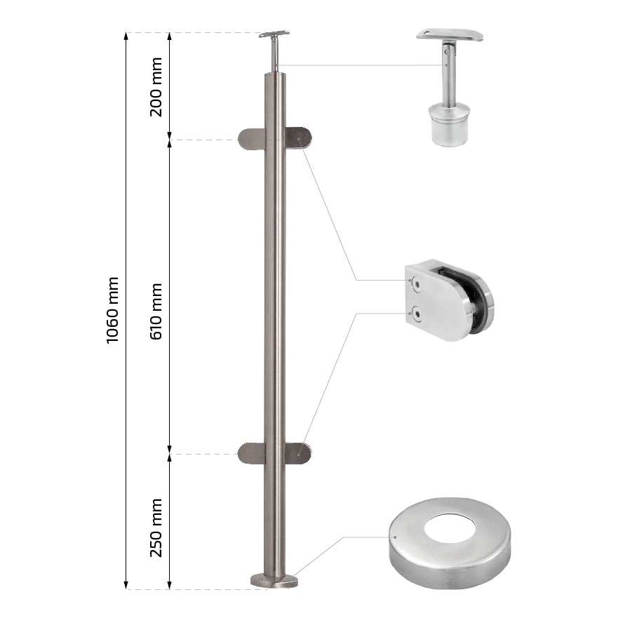 Balustradepaal middenstuk fi 42,4x1060/1102,4 mm/ 4 glashouders