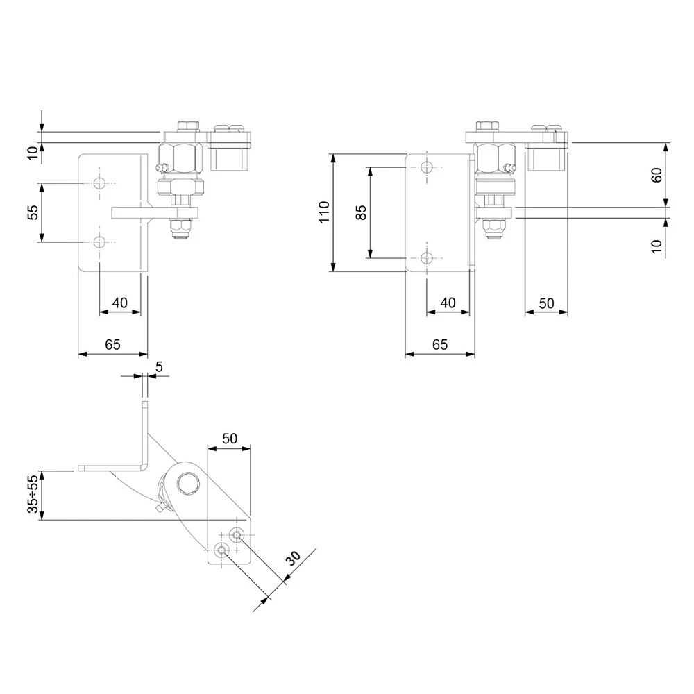 - Hartafstand montagegaten (verticaal): 55 mm (steun) / 85 mm (zijplaat)