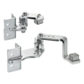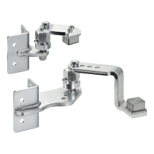 Scharnieren zijn bestemd voor lassen op stalen palen 50×50 mm en voor montage op betonnen palen met gebruik van montagegaten. Het scharniermechanisme met excentrische schroef zorgt voor soepele regeling van de hoek en het niveau van de poortvleugel na montage — er is geen behoefte aan perfecte waterpassing van palen tijdens het betonnen. Smeernippels ingebouwd in scharnieren zorgen voor eenvoudig onderhoud — periodiek smeren is voldoende zonder noodzaak tot demontage van het gehele scharnier.