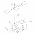 - Afstand van basis tot as doorvoergat: 20 mm