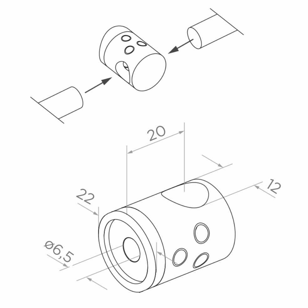 De beugel wordt direct op de hoofdbuis van de balustrade gemonteerd en maakt doorvoer van de vulstaaf mogelijk, wat de montage aanzienlijk versnelt en het verkrijgen van gelijke, herhaalbare afstanden tussen staven vergemakkelijkt. Ingebouwde aandrukschroeven zorgen voor veilige en duurzame bevestiging van de staaf in de beugel.