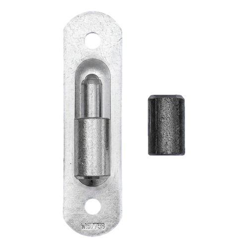 In de set bevinden zich een stalen schild met kogelpen en huls (pan), die het tegenelement van het scharnier vormt. Dankzij de precieze walsbewerkingen van de onderdelen werkt het scharnier stil en gelijkmatig, wat van bijzonder belang is bij vaak geopende toegangspoorten en perceelhekken.