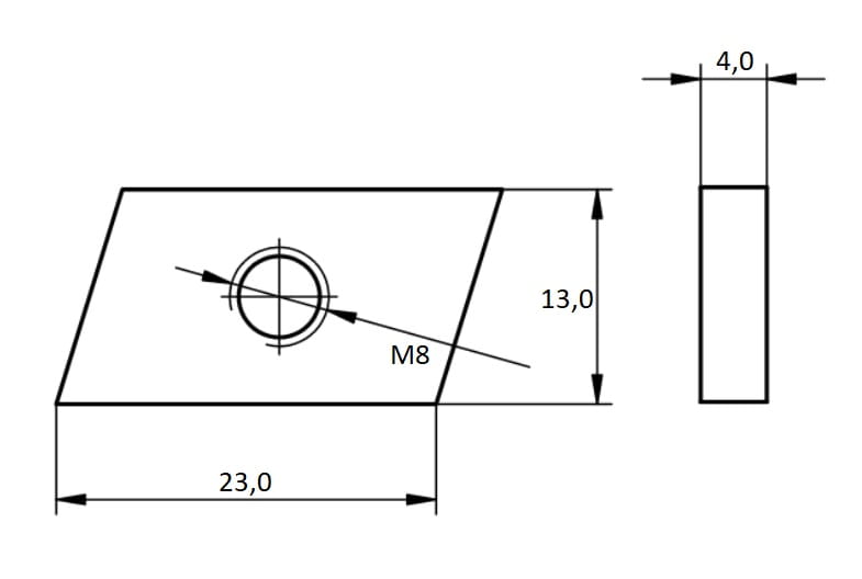 Inzetstuk met schroefdraad M8, Type 28/15, Artikel 9297, A2 roestvrij staal - 1.4301 kwaliteit 30 met scherpe randen, voor fotovoltaïsche systemen.