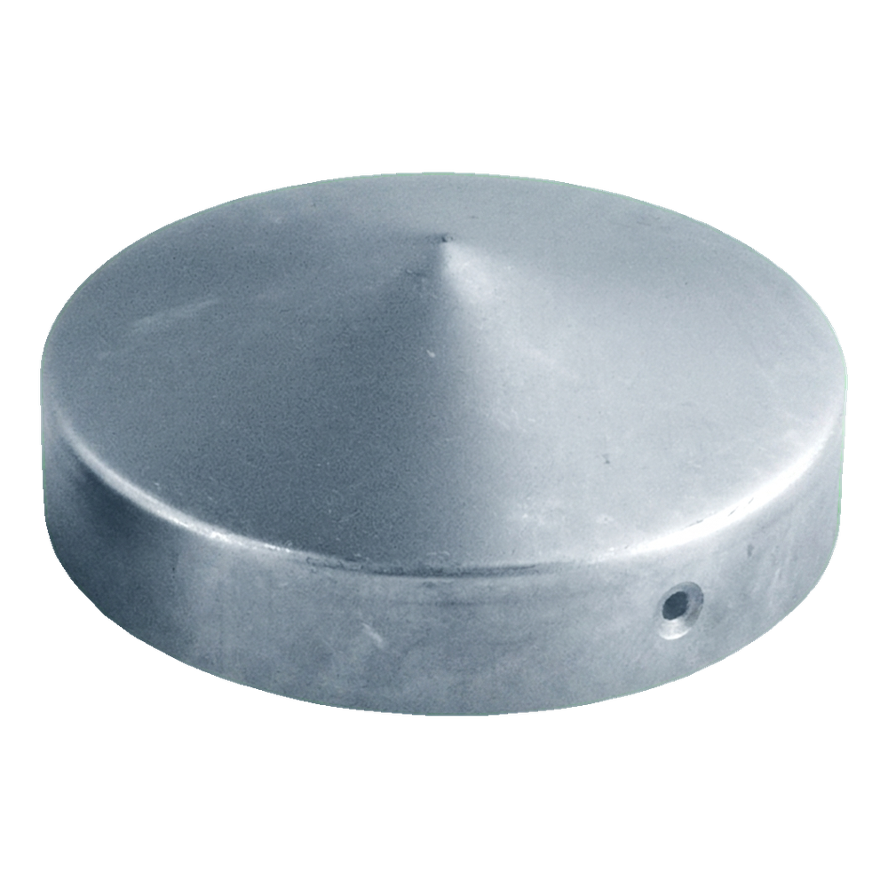 Ronde stalen gegalvaniseerde kap bestemd voor plaatsing op hekwerkpalen met diameter Fi 77 mm. Beschermt effectief de bovenkant van de paal tegen regen, sneeuw en andere weersomstandigheden, voorkomt dat water in het profiel dringt en vroegtijdige corrosie. Dankzij de kegelvormige bovenkant stroomt water naar de zijkanten, wat vochtophoping op het oppervlak elimineert.