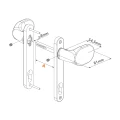 In de set bevinden zich bevestigingsschroeven die installatie mogelijk maken op profielen met een dikte van 37 mm tot 65 mm, wat de meeste populaire profielen gebruikt in omheiningen en poorten omvat. De vierkante as van 8 mm en de genormaliseerde hartmaat van 92 mm zorgen voor een solide, zekere verbinding met het slot en snelle montage zonder noodzaak van aanvullende profielbewerking.