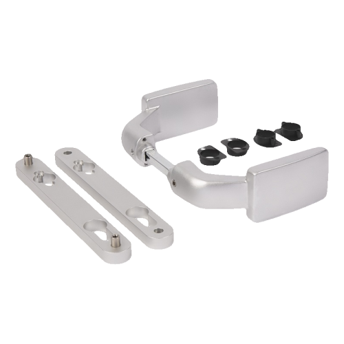 In de set zitten: tweezijdige deurgreep met handvat, twee montageplaten (met opening voor cilinder en zonder), afstandsbussen voor het aanpassen van de profieldikte en bevestigingsschroeven. De set is klaar voor montage zonder de noodzaak van aanvullende onderdelen.