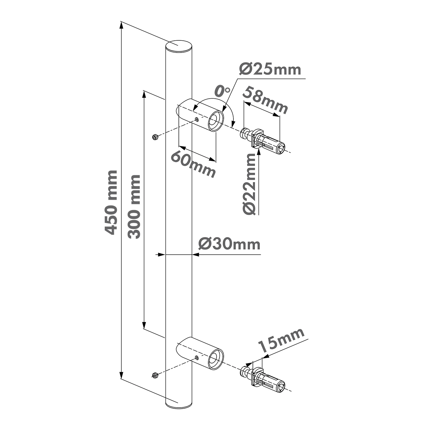 Locinox – vaste handgreep van RVS 316 voor poort, 450 mm, eenzijdig