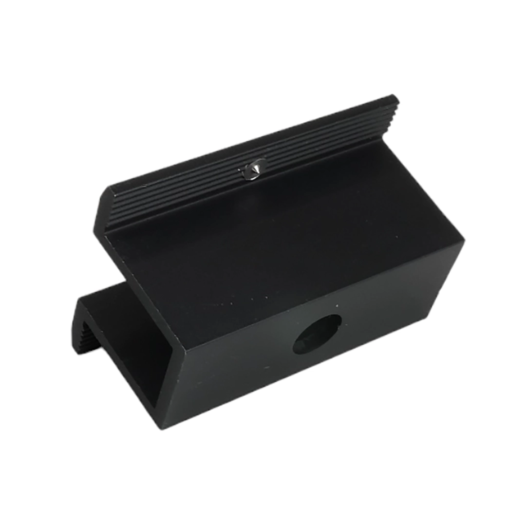 De klem is vervaardigd uit aluminium 6060 met een zwarte poedercoating.