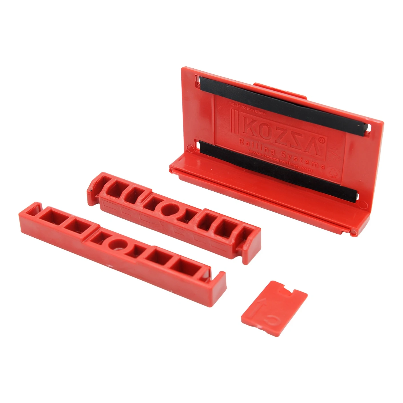 Montageset KOZA Glassmove® is een complete oplossing voor het professioneel plaatsen van glasplaten met een dikte van 12 tot 13,52 mm in 5 meter lange aluminium profielen van het type U/L. Het systeem zorgt voor een stabiele glaspositionering onder een hoek van 90°, waardoor aanvullende correctie-elementen overbodig zijn. Dankzij de intuïtieve constructie verloopt de montage snel en herhaalbaar — ideaal voor teams die glazen balustrades, scheidingswanden en volledig glazen constructies realiseren.