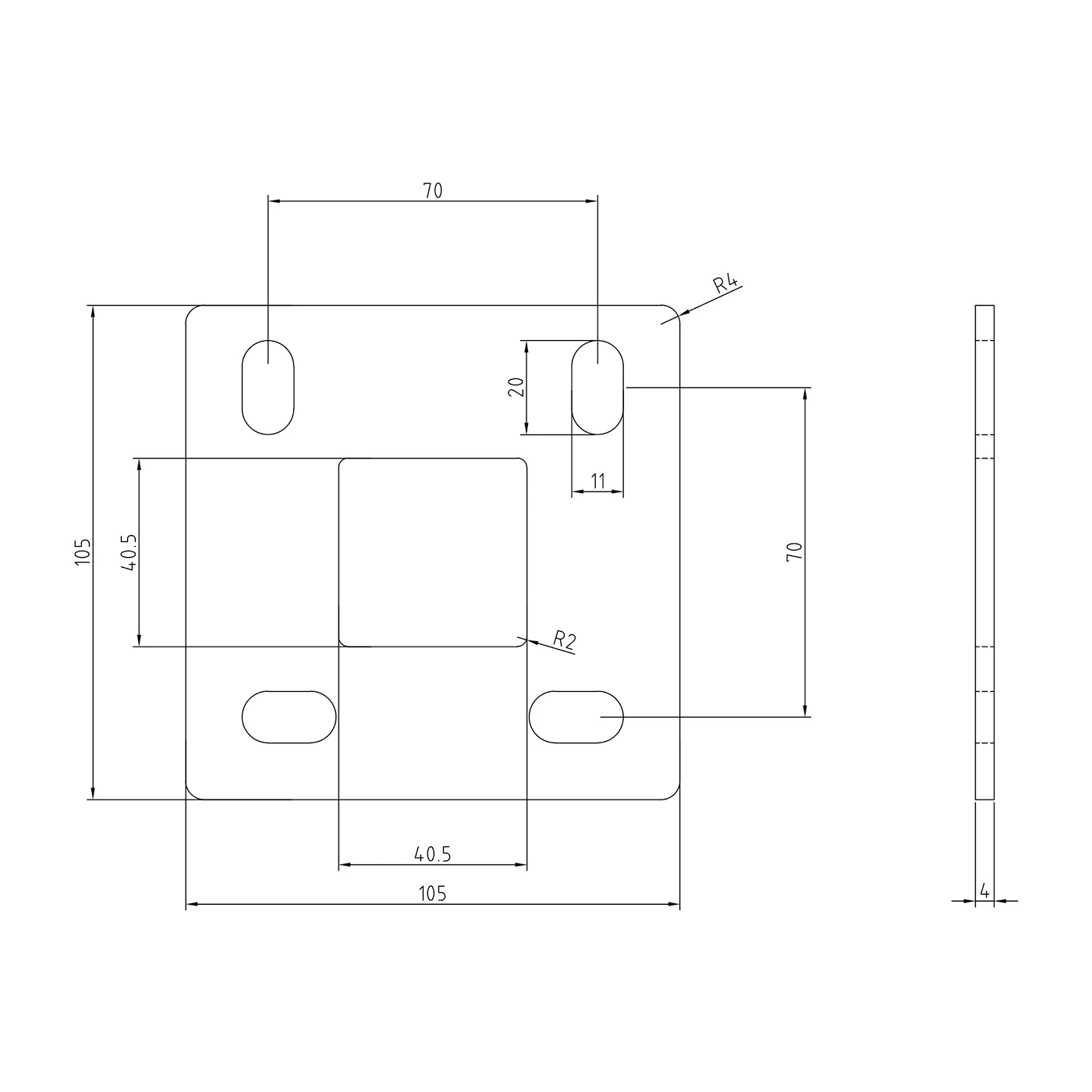 - Afrondingsradius buitenhoeken: R4