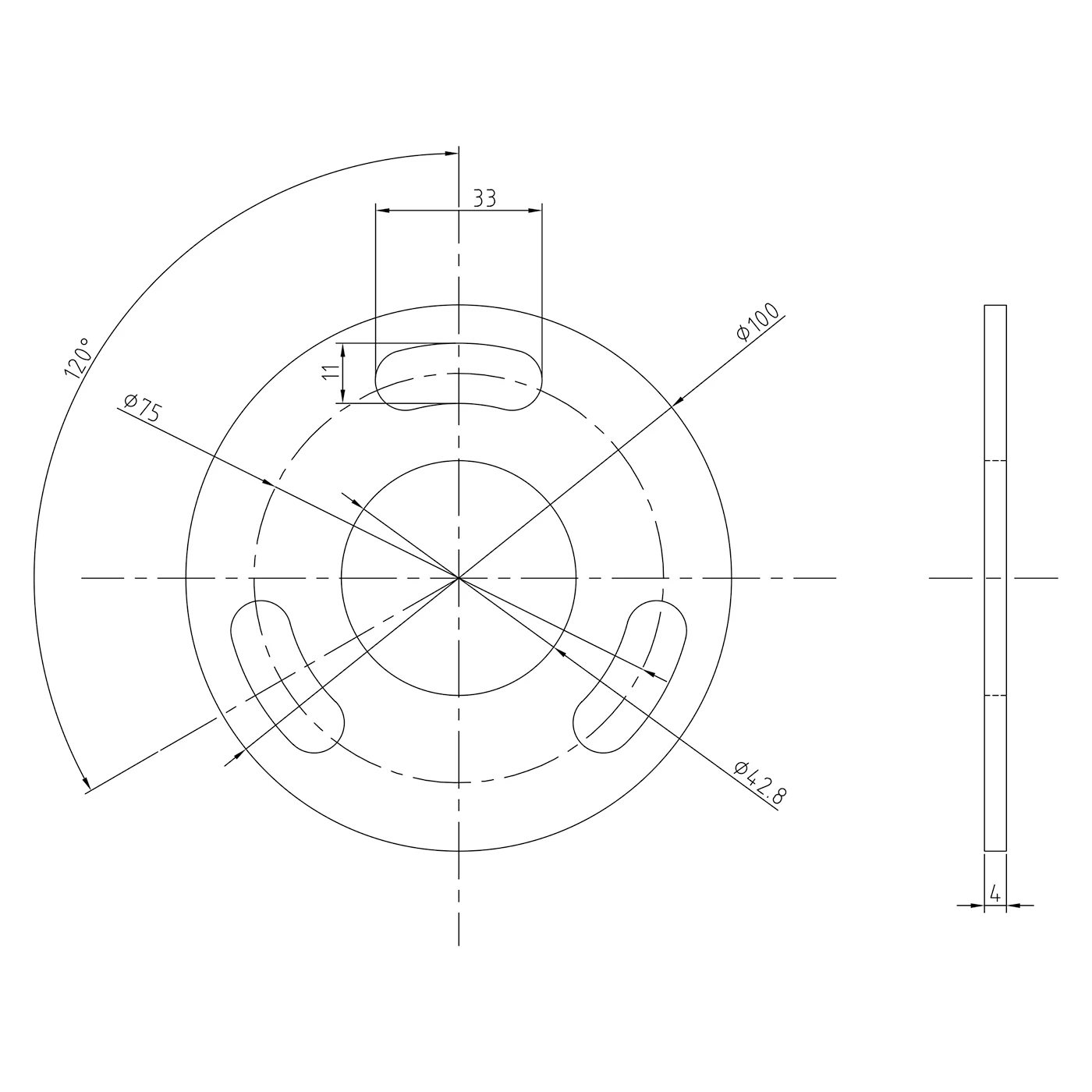 - Montagegaten: 3 × boonvorm (33 × 11 mm)