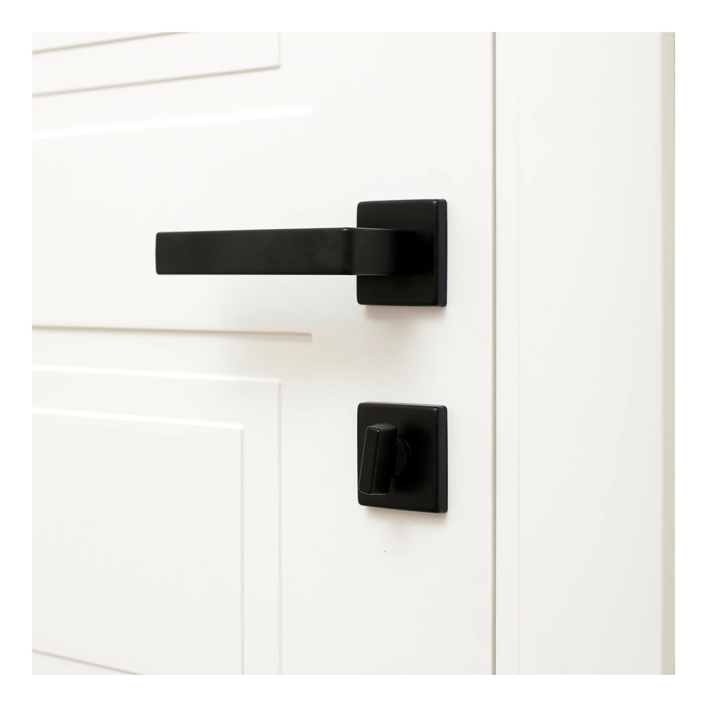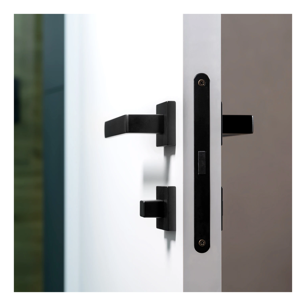 De Genova klink presteert uitstekend waar modern uiterlijk en duurzaamheid belangrijk zijn — in appartementen, eengezinswoningen, kantoren en commerciële objecten. Zwarte, matte afwerking is een van de meest populaire trends in hedendaagse deurbeslag. De eenvoudige, geometrische vorm van handgreep en schild past zowel bij industriële als klassieke interieurs. De complete montageset maakt snelle installatie mogelijk zonder de noodzaak om extra onderdelen aan te schaffen — ideale oplossing voor bedrijven die seriële montages uitvoeren.