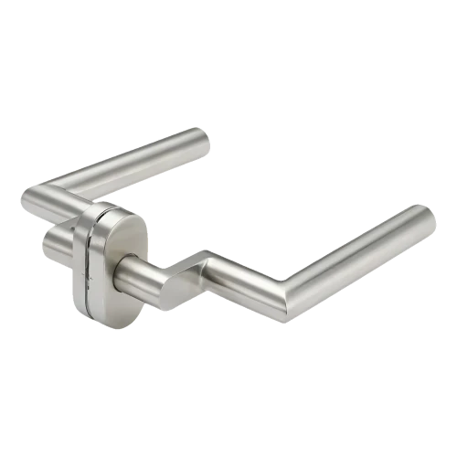 Greep PSG Katania is een set dubbele deurgrepen van roestvrijstaal AISI 304 (INOX) met ovaal schild en karakteristieke uitsparing van de handgreep. Door het gebruik van hoogwaardige roestvrijstaal zorgt het product voor jarenlange, storingsvrije werking — zelfs op plaatsen met veel verkeer, zoals openbare gebouwen, kantoren of woonwijken.
