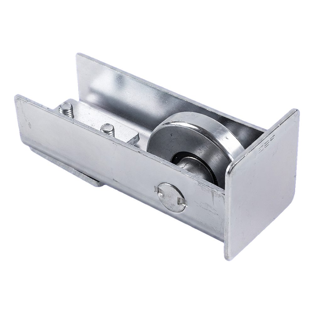 Oprijrol 60 met afsluiting van het merk PSG is een stalen, verzinkt element dat wordt gemonteerd aan het begin van de rail van een zelfondersteuned schuifpoort. Tijdens het sluiten van de poort rijdt de rol in de oprijbeugel die aan de paal is bevestigd — hierdoor wordt het gewicht van het vleugel verdeeld over meer steunpunten, en wordt de poort stabiel vergrendeld in de gesloten positie.