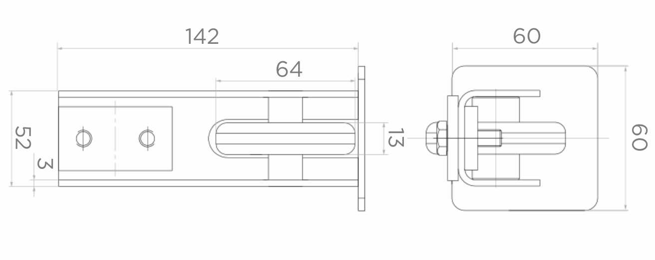 - Past op rail: 60 × 60 × 3 mm