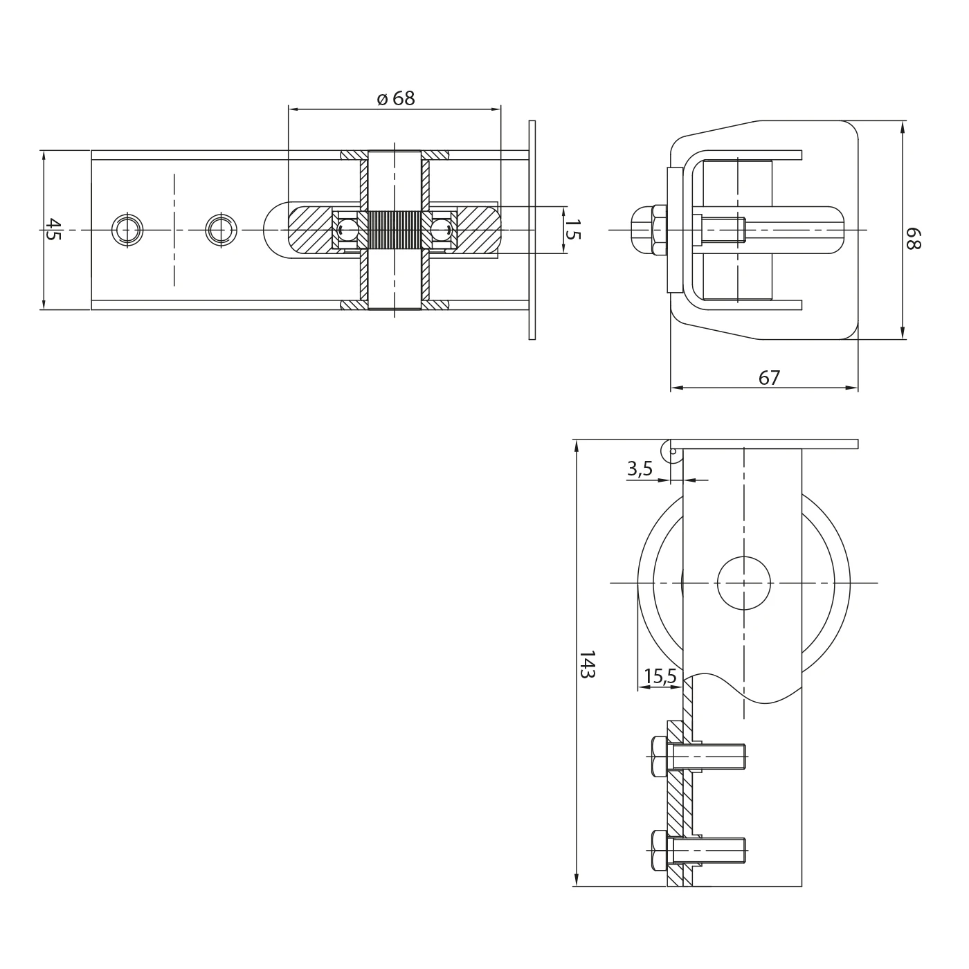 De rol werkt samen met de oprijhouder, wat soepel en storingsvrij sluiten van de poort mogelijk maakt. De uitvoering in gegalvaniseerd staal garandeert hoge weerstand tegen corrosie en weersinvloeden — een ideale oplossing voor buiteninstallaties die blootgesteld zijn aan regen, sneeuw en wisselende temperaturen. De set bevat montageschroeven, wat snelle montage en aanpassing aan het profielsysteem 68×68 mm vergemakkelijkt.