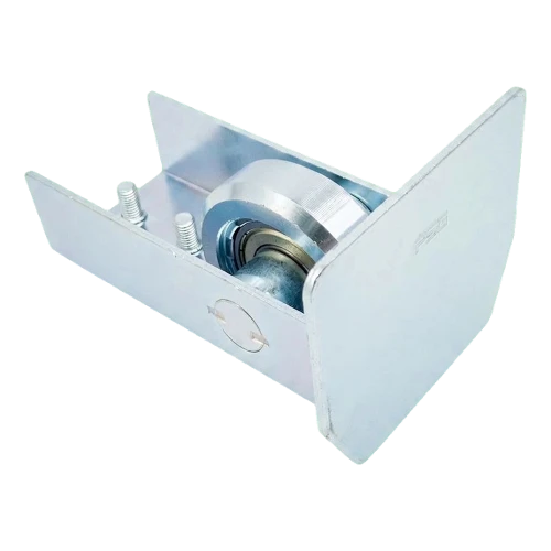 Poortrol met afsluiting PSG is een stalen, gegalvaniseerd element dat aan het begin van de rail van een zelfondersteunende schuifpoort wordt gemonteerd. De rol rijdt in de oprijbeugel die aan de paal is bevestigd, waardoor het gewicht van de poort over meer steunpunten wordt verdeeld, en het poortvleugel stabiel is na sluiting. Deze oplossing verlengt de levensduur van de rijwagentjes aanzienlijk — lagere belasting per eenheid vertaalt zich in lagere onderhoudskosten en zeldzamere vervanging van onderdelen.