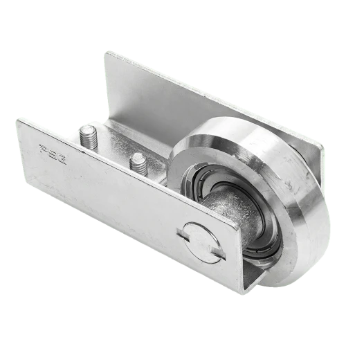 Aanrijdrol PSG 70/80 is een stalen, gegalvaniseerd element dat aan het begin van de rail van de zelfrijdende schuifpoort wordt gemonteerd. De functie ervan is om in de aanrijdhouder te rijden die aan de poortpaal is bevestigd, waardoor het gewicht van de poort over meer elementen wordt verdeeld en deze effectief wordt gestabiliseerd na sluiting. Het gebruik van een aanrijdrol verlengt aanzienlijk de levensduur van de rijwielen van de poort door hun belasting in gesloten positie te beperken.