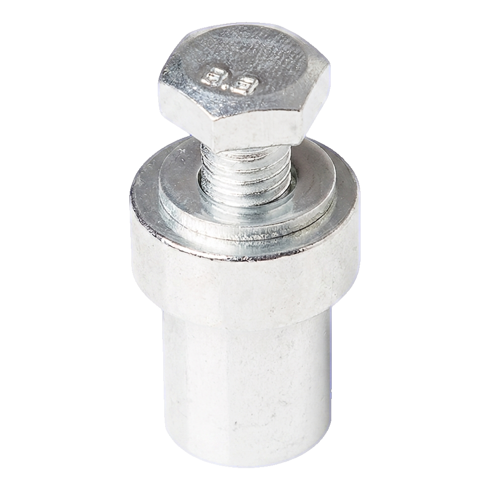 De huls is verzinkt, wat een hoge corrosiebestendigheid garandeert, zelfs onder veeleisende atmosferische omstandigheden. De compacte constructie en het geringe gewicht (46 g) vergemakkelijken de montage — een standaard inbussleutel voor M8 schroeven is voldoende. Het element wordt geleverd compleet met M8 × 25 mm schroef klasse 8.8 en sluitring, zodat geen aanvullende accessoires hoeven te worden geselecteerd.
