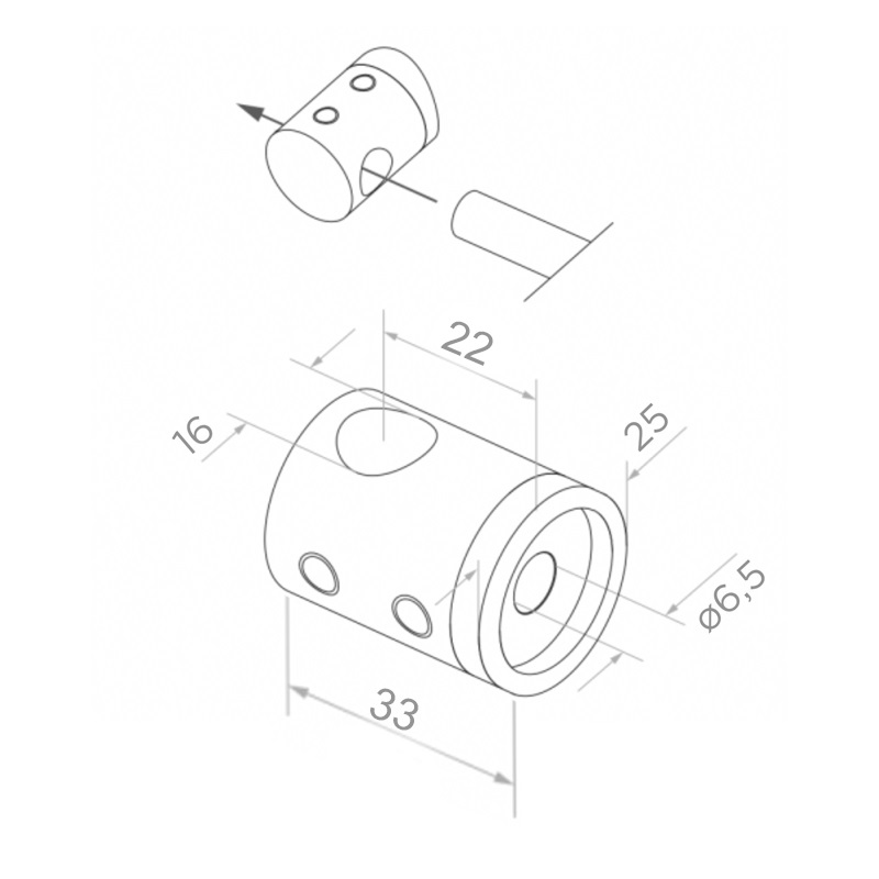 Vervaardigd van duurzaam roestvrijstaal AISI 304 met satijnen afwerking, bestand tegen corrosie en weersomstandigheden. Cilindrische vorm met doorlopend gat voor staaf en montagegat in de basis maakt snelle en zekere montage aan het vlak mogelijk. Zijdelingse klemschroeven maken het mogelijk de staaf in de klem te fixeren zonder gebruik van extra elementen.