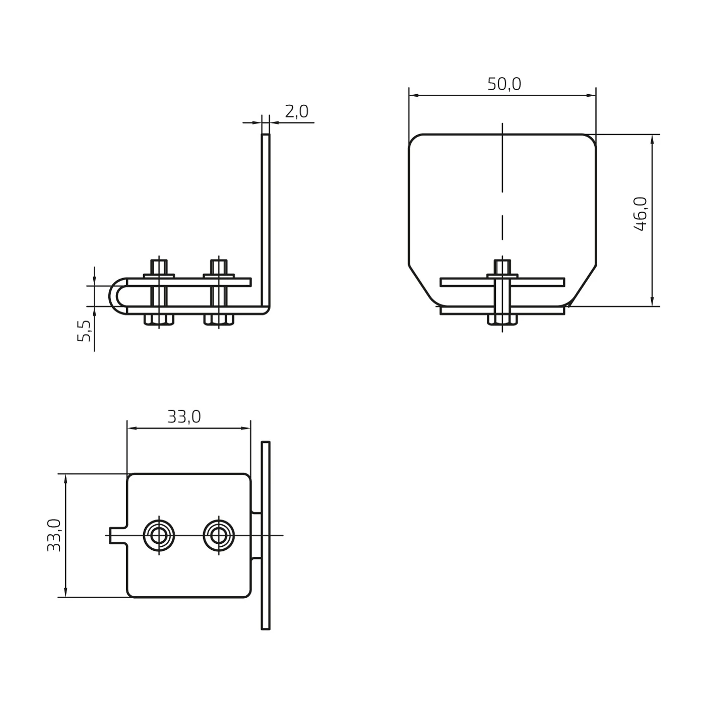- Afmetingen klemelement: 33 × 33 mm