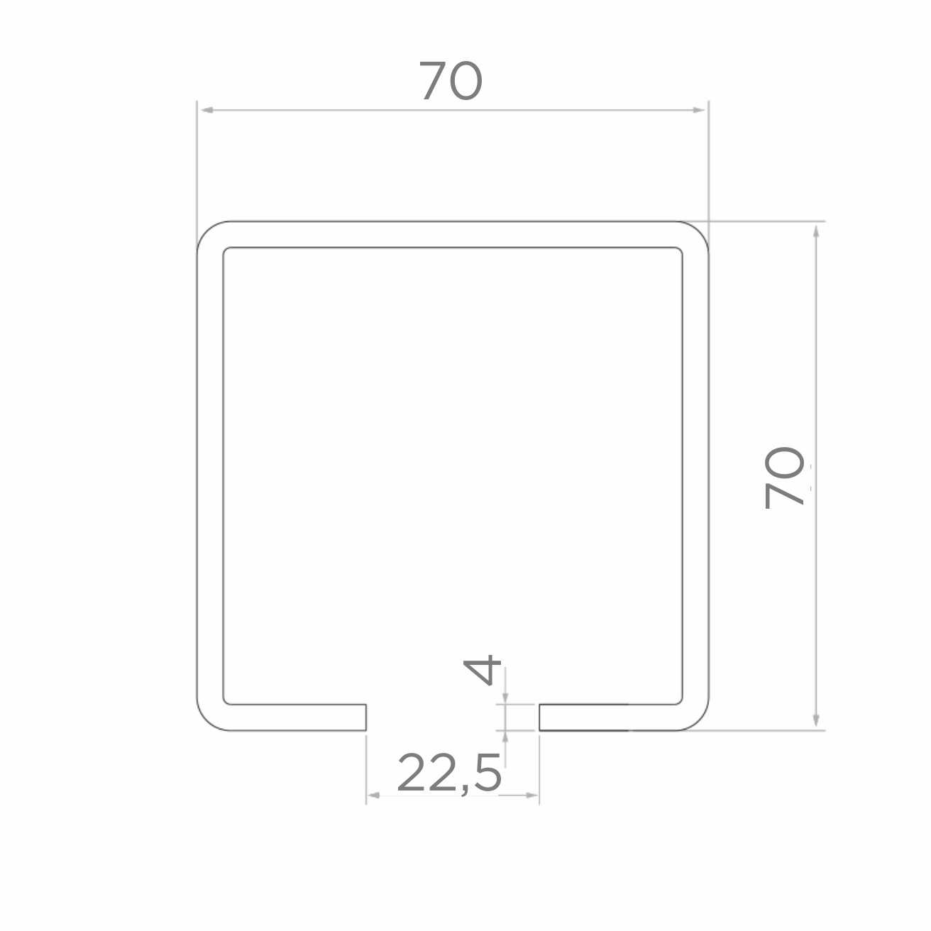 Het U-profiel is een essentieel onderdeel van het zelfrijdende schuifheksysteem. Horizontaal gemonteerd vormt het een rijbaan waarover de wagens die de hekvleugel ondersteunen bewegen. De spleet met breedte 22,5 mm in het onderste deel van het profiel zorgt voor vrije geleiding van de rijwagens. Dankzij de dwarsdoorsnede-afmetingen 70×70 mm is de rail geschikt voor hekken met grote eigengewicht en biedt stabiliteit en stijfheid van de gehele constructie.