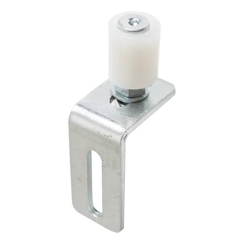Geleidingsrol FI 30 verstelbaar van het merk PSG is een betrouwbaar onderdeel van het geleidingssysteem voor schuifpoorten. De taak ervan is om de rail (C-profiel) verticaal te houden tijdens het openen en sluiten van de poort, wat zorgt voor een soepele en stille werking van het gehele mechanisme. Dankzij de mogelijkheid om de positie van de rol te verstellen via het langwerpige montagegat (boon) in het hoekstuk, kan de installateur de geleiding precies aanpassen aan de omstandigheden op locatie — zelfs bij lichte oneffenheden van de ondergrond of palen.