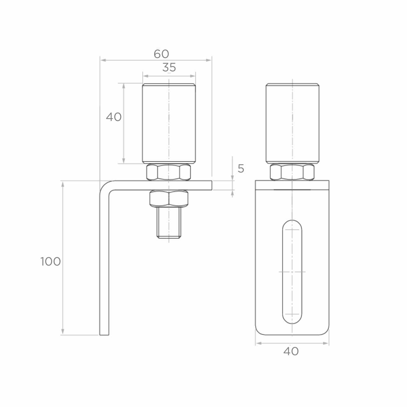 - Lengte horizontale arm: 60 mm