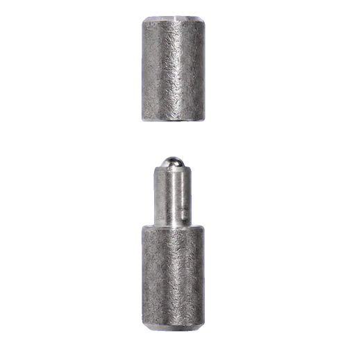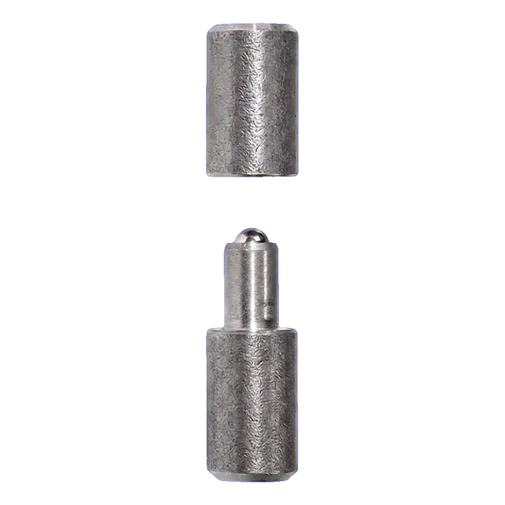 Gewalst draaipunt met kogel bestemd voor vleugelpoorten. De tweedelige constructie bestaat uit een huls en een pen met kogeleind, wat zorgt voor soepele draaiing van de poortvleugel en eenvoudige montage door lassen. Gewalst uit staal, klaar voor inlassen in frame en vleugel — zonder de noodzaak van boren of gebruik van extra verbinders.