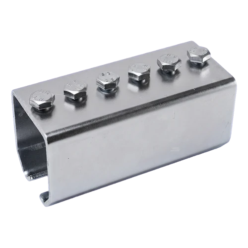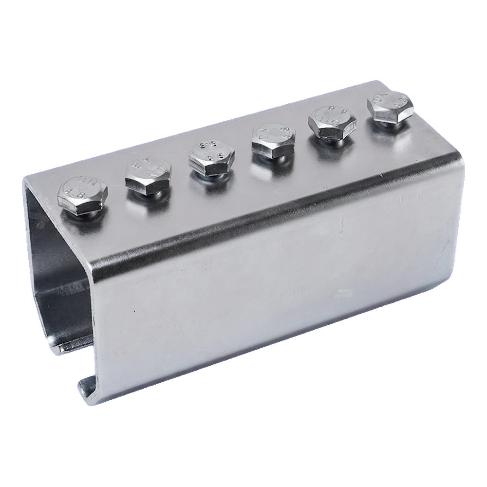 Gegalvaniseerde koppeling voor hangrail van het merk PSG bestemd voor het verbinden van C-profiel (rail) secties met afmetingen 59×62 mm, gebruikt in hangpoorten. Solide constructie van gegalvaniseerd staal en een complete set van 6 klemschroeven in de set maken snelle, betrouwbare montage mogelijk zonder de noodzaak van extra onderdelen. De koppeling wordt over de voeg van twee rails geschoven en zorgt voor een stijve en duurzame verbinding, waardoor speling en trillingen tijdens werking van de poort worden weggenomen.