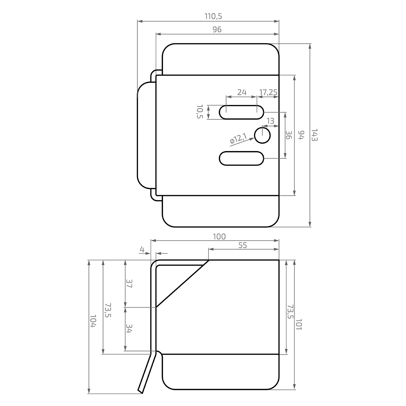 - Ovale montagegaten: 24 × 10,5 mm – 2 st.