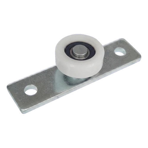 Nylon geleidingsrol ø40 mm met montageplaat is een element dat de werking van onderhangende poorten stabiliseert. De rol gemaakt van wit nylon is gemonteerd op een lager, wat zorgt voor lage rolweerstand en stille werking van het mechanisme. De montageplaat van gegalvaniseerd staal met een dikte van 6 mm garandeert duurzame en corrosiebestendige bevestiging.