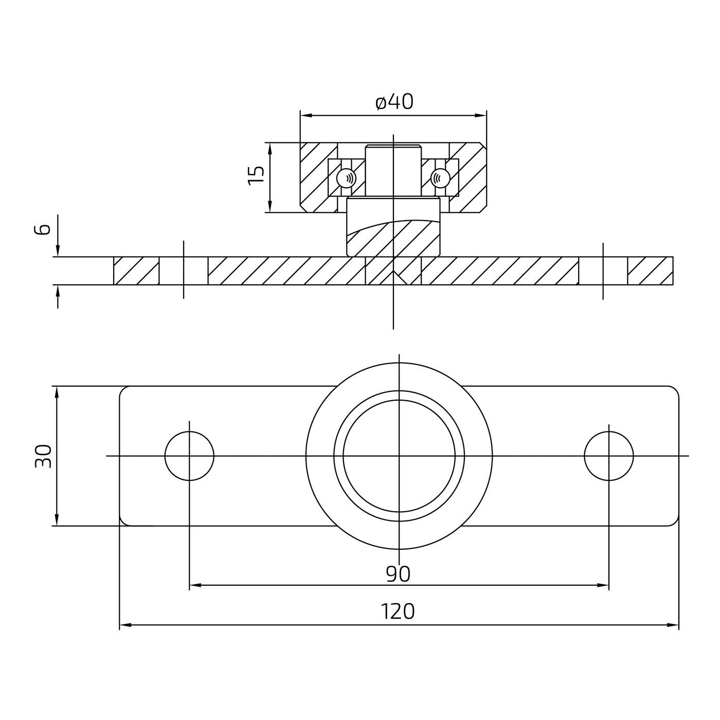 PSG – nylon geleidingsrol voor onderhangende poort ø40 mm met montageplaat