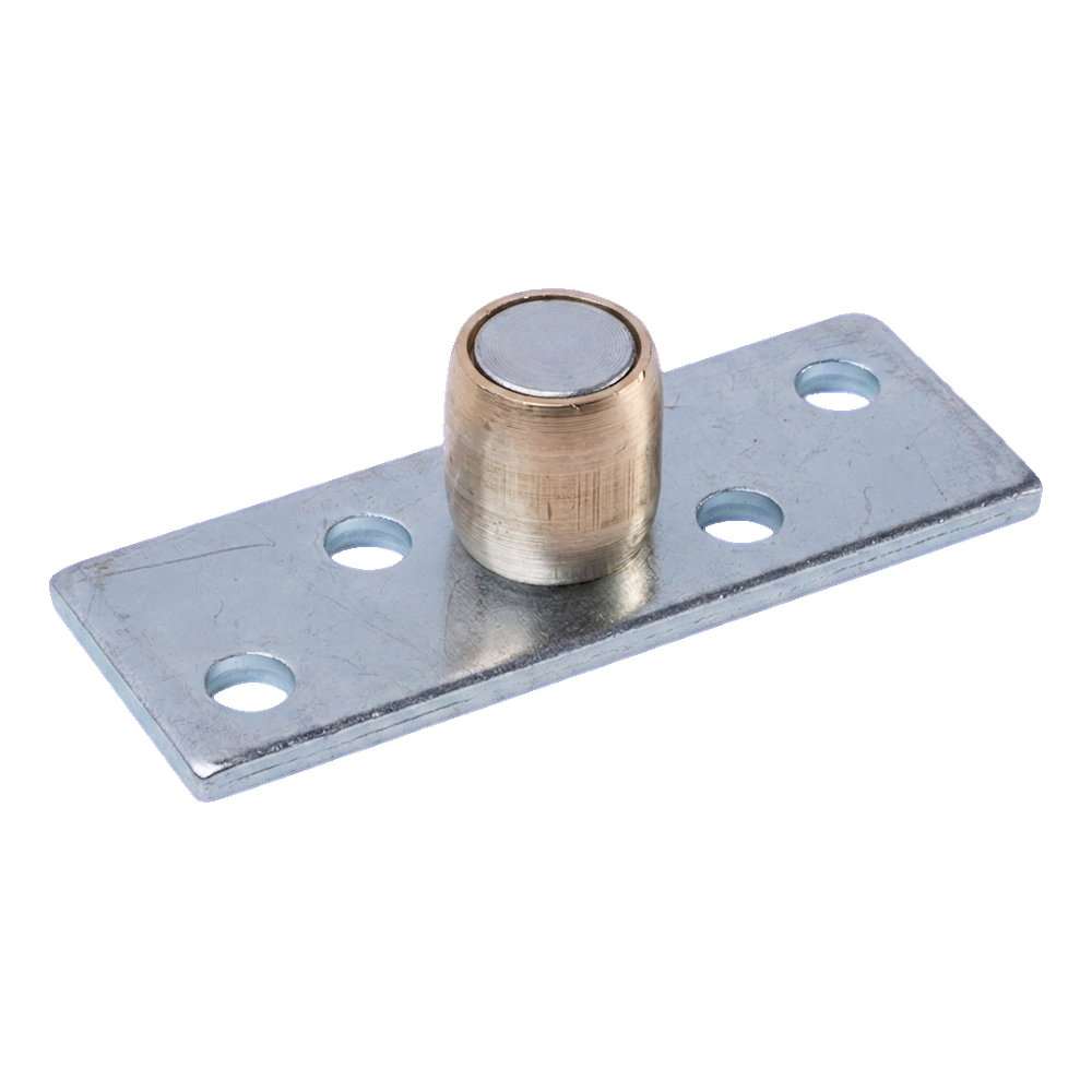 De rechthoekige plaat met vier montagegaten maakt betrouwbare en snelle bevestiging aan de ondergrond mogelijk met standaard schroeven. De compacte constructie en universele gatenafstand zorgen ervoor dat de geleidingsrol past bij de meeste populaire hangende poortsystemen.