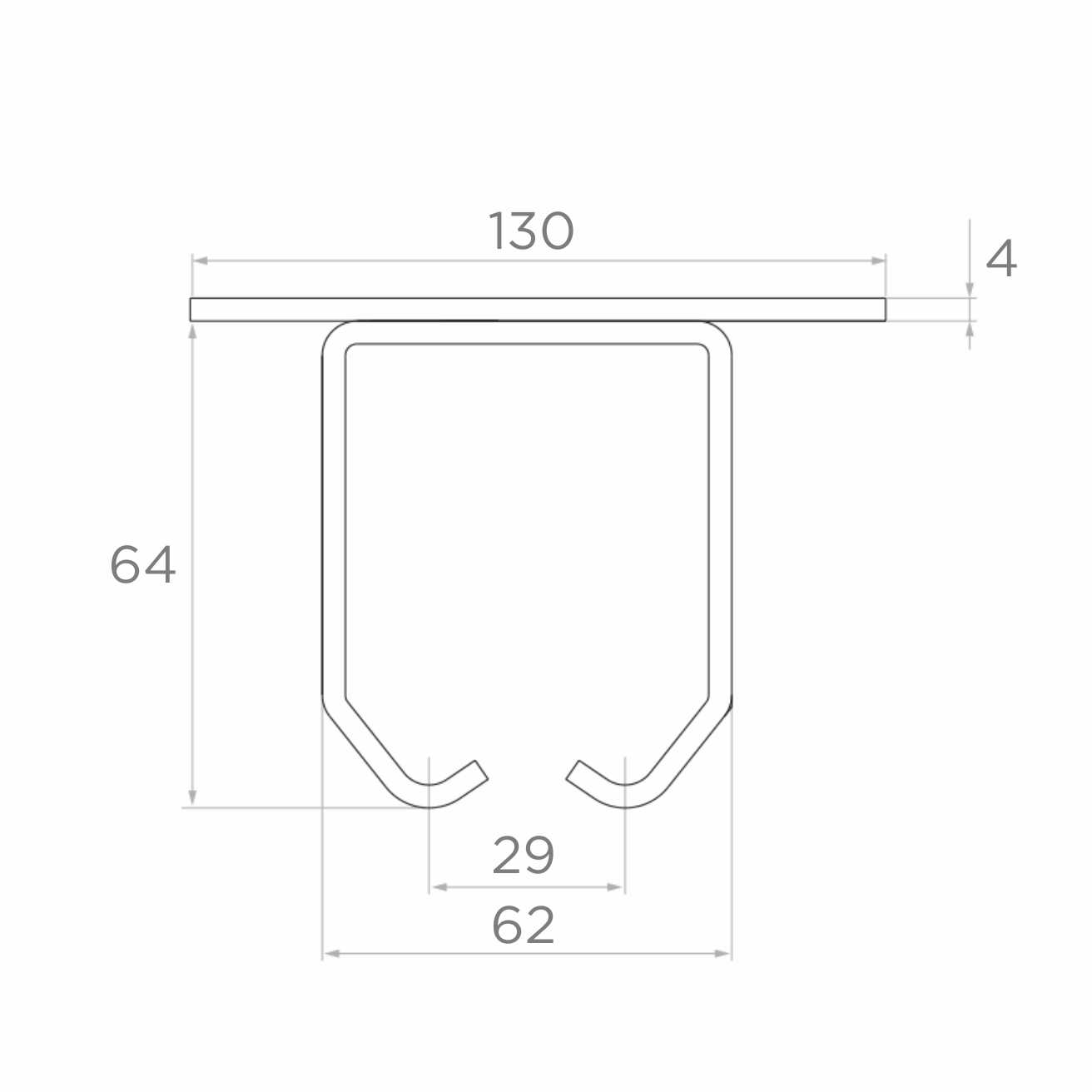 - Hoogte ophangbeugel: 64 mm