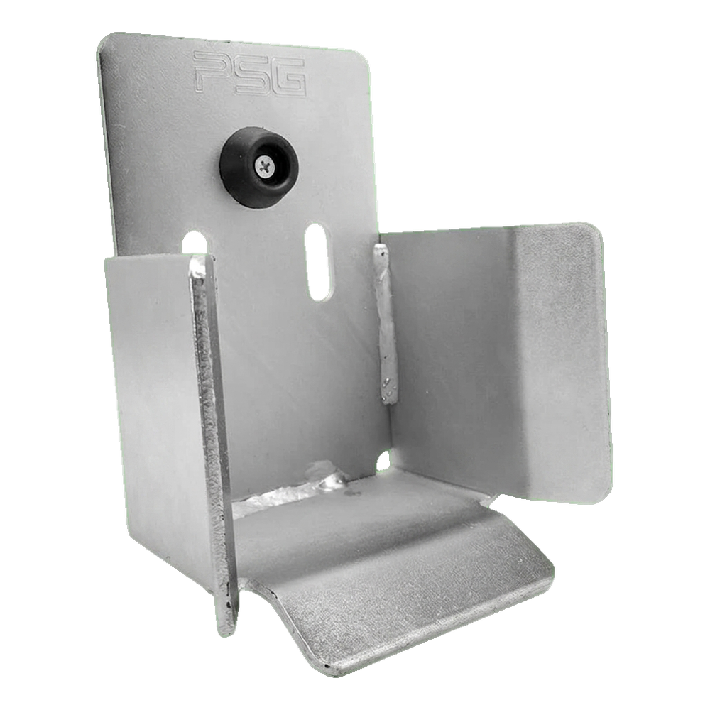 PSG aanrijdbeugel bestemd voor montage van zelfhangende schuifpoorten uitgerust met geleidingsrail met afmetingen 89×100 mm. Stevige, gelaste constructie van staalplaat met dikte 4 mm garandeert langdurige en storingsvrije werking van de poort, en zorgt voor nauwkeurige geleiding van de rail op het aanrijdpunt.