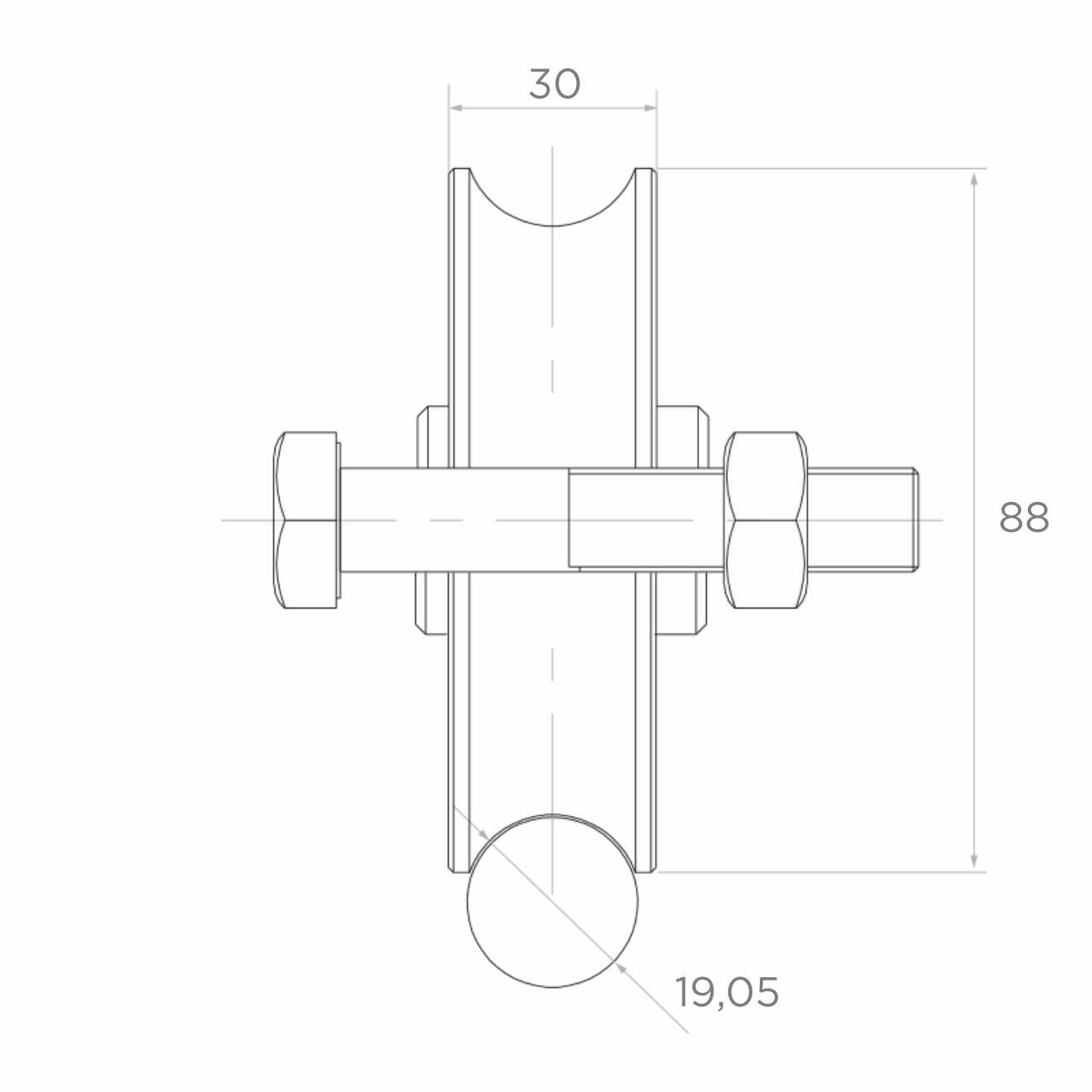 De rol is geschikt voor gebruik met ronde rails (buizen) met een diameter van 3/4" (19,05 mm). Het groefprofiel type 'O' zorgt voor een veilige plaatsing op de rail en minimaliseert zijwaartse verschuivingen van de poortvleugel tijdens het rijden. De solide stalen houder met massieve asschroef garandeert duurzame bevestiging in het schuifpoortframe.