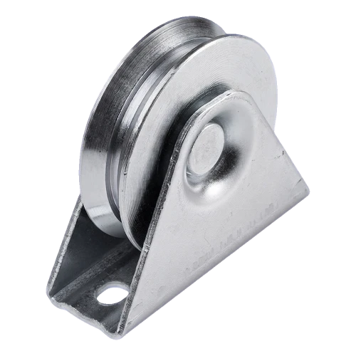 Stalen looprol met V-groef bestemd voor rails schuifpoorten. Constructie van gegalvaniseerd staal zorgt voor hoge corrosiebestendigheid en jarenlange storingsvrije werking onder buitenomstandigheden. De rol is gemonteerd in een massieve montagebeugel, wat stabiele geleiding van de poort over de looprail garandeert.