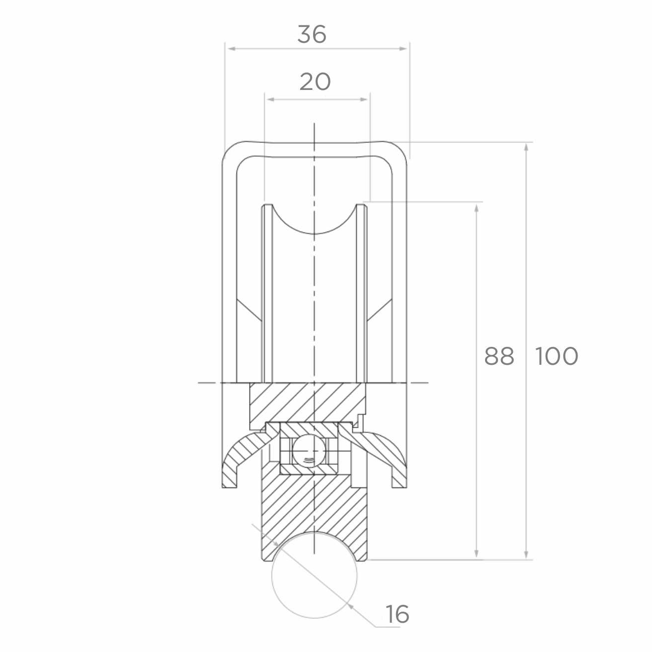 PSG poortrol V diameter 88 mm met beugel – voor rails schuifpoort