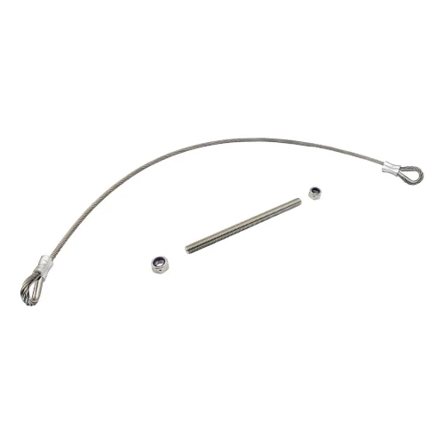 De kabel wordt gemonteerd tussen de poortvleugel en de hekpaal. De lussen aan beide uiteinden van de kabel maken snelle bevestiging mogelijk met behulp van de meegeleverde draadeind en moeren. Bij scharnierfalen neemt de kabel het gewicht van de vleugel over en voorkomt het vallen — beschermt tegen beschadiging van de poort, hekwerk en nabij geparkeerde voertuigen.