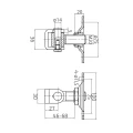 Een van de belangrijkste voordelen van dit scharnier is de geleidelijke verstelling van 46 tot 68 mm (afstand van de penas tot het montagevlak). Dit maakt nauwkeurige aanpassing van de positie van de hekvleugel mogelijk na montage van het schild, wat vooral belangrijk is bij ongelijke palen of compensatie van uitvoeringstoleranties. De schroefdraad M20 zorgt voor solide en betrouwbare bevestiging, en vier montagegaten met diameter ø11,5 mm met hartafstand 75 mm maken stabele bevestiging van het schild aan de paal of muur mogelijk.