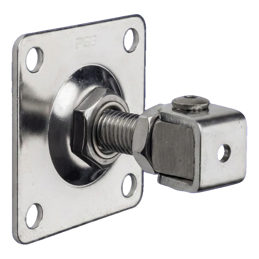 PSG verstelbaar hekscharnier M20 met schild 100×100 mm – roestvrijstaal AISI 304