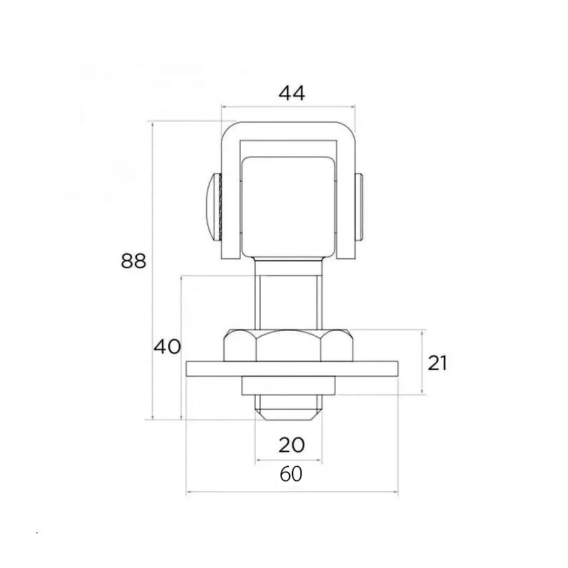 Het scharnier is bestemd voor lassen — het oor wordt direct in de constructie van de poortvleugel of het hek gemonteerd, en de bout wordt in de paal geplaatst. De universele constructie zorgt ervoor dat het product past bij verschillende typen draaipoorten en hekken. De constructie is ontworpen voor gebruik onder wisselende weersomstandigheden, waardoor het het hele jaar door geschikt is voor buitentoepassingen.