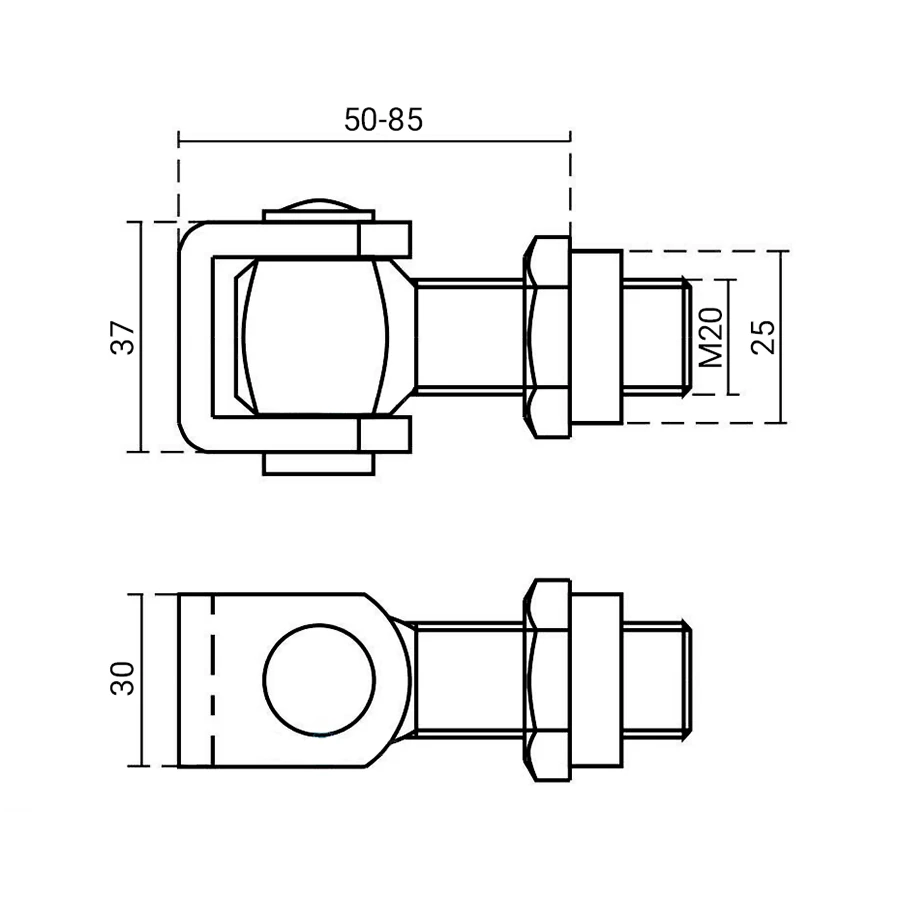 Verstelbereik van 50 tot 85 mm geeft de installateur grote flexibiliteit bij het aanpassen van de afstand tussen vleugel en paal. Hierdoor compenseert het scharnrnier kleine lasinnauwkeurigheden en terreinoneffenheden zonder noodzaak van hernieuwde demontage. Na instelling van de optimale positie zorgt schroef M20 voor stijve en stabiele houding van de vleugel, wat soepel openen en sluiten garandeert voor vele jaren gebruik.