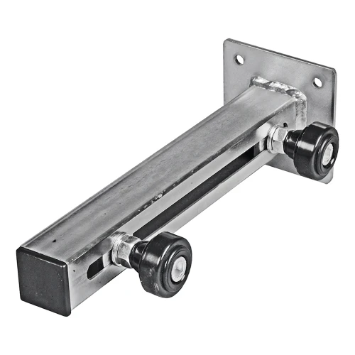 Verstelbare bovengeleidingsset PSG is een stalen element dat een schuifhek verticaal stabiliseert tijdens het openen en sluiten. Twee verstelbare kunststof rolletjes maken het mogelijk om de afstand nauwkeurig aan te passen aan de dikte van het bovenprofiel van het hek — zowel vrijdragende als rail-uitgevoerde hekken. Dankzij de eenvoudige constructie en verstelbaarheidsmogelijkheid in het bereik van 0–195 mm kan de installateur de geleiding snel aanpassen aan een breed scala aan hekken zonder elementen te hoeven vervangen.