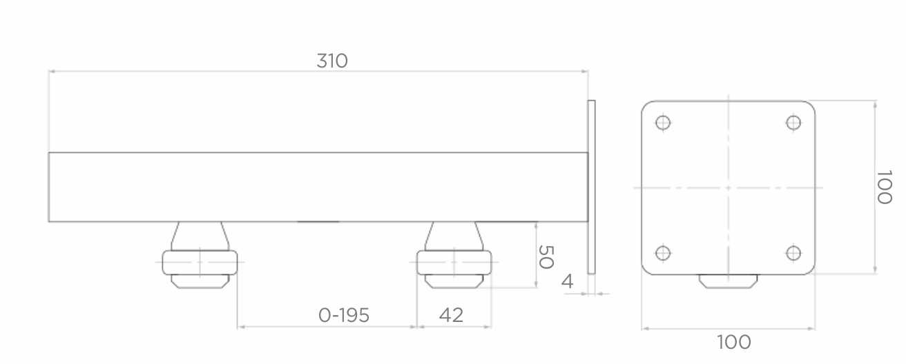- Montageplaat: 100 × 100 mm, dikte 4 mm