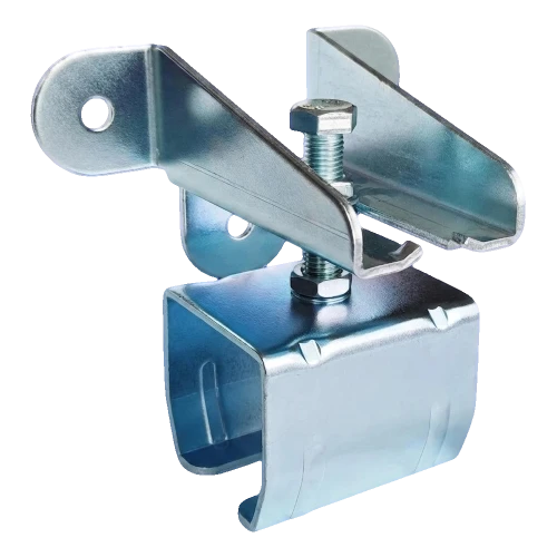 Wandbeugel voor profiel 64×68 mm van het merk PSG is een solide ophangingscomponent voor geleidingsrails gebruikt in systemen voor opgehangen poorten. Gemaakt van dik staalplaat met een dikte van 4 mm met zinkcoating, zorgt het voor duurzame en stabiele bevestiging van de rail aan de muur of bovenstijl. Dankzij de M16 bout met moeren krijgt de installateur een vloeiende afstandsregeling van de muur in het bereik van 52–125 mm, waardoor het mogelijk is om de rijbaan van de poort precies in te stellen, zelfs bij een ongelijkmatig montageoppervlak.
