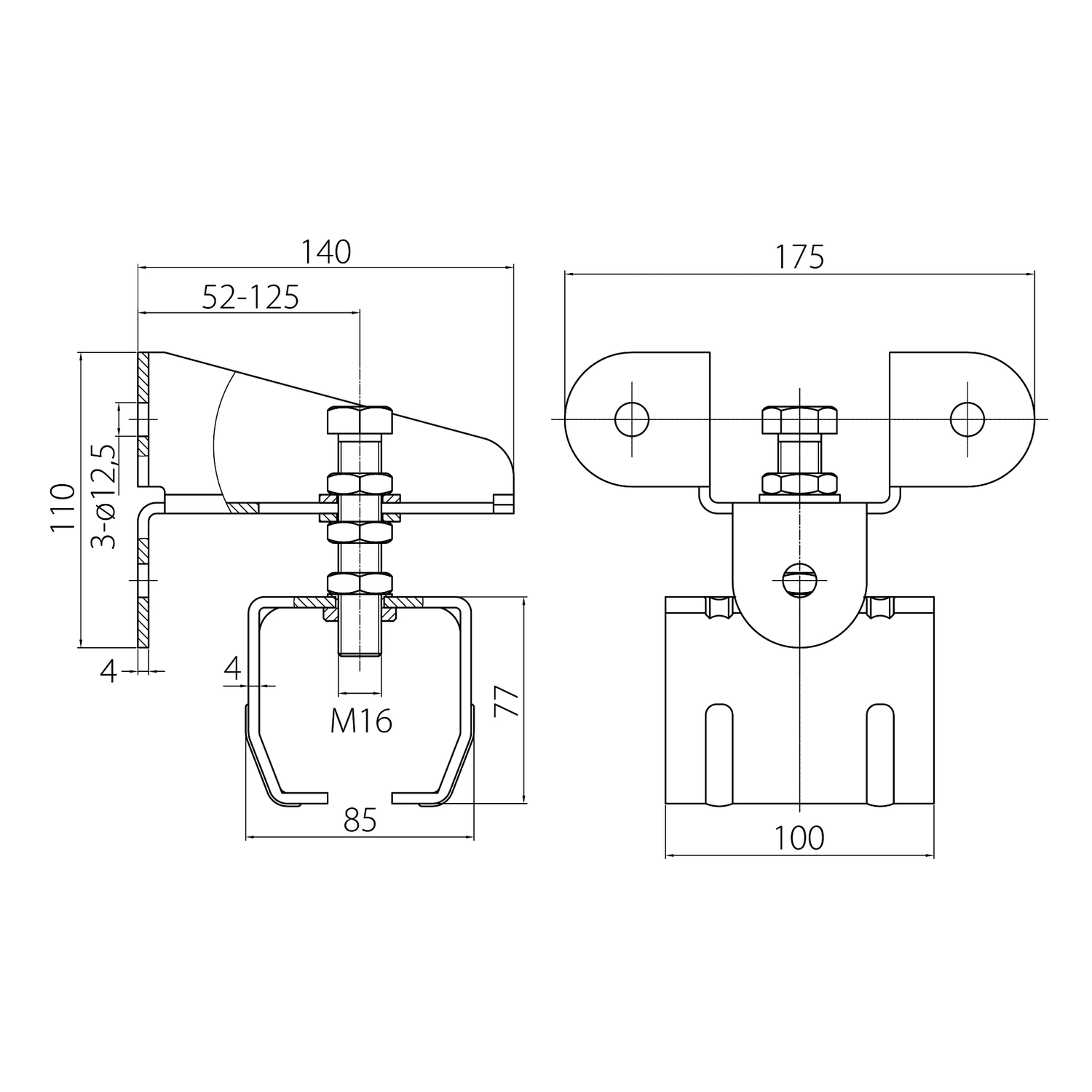 - Montagegaten: 3 × Ø12,5 mm